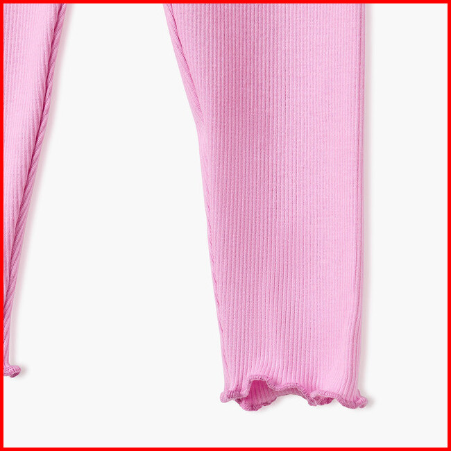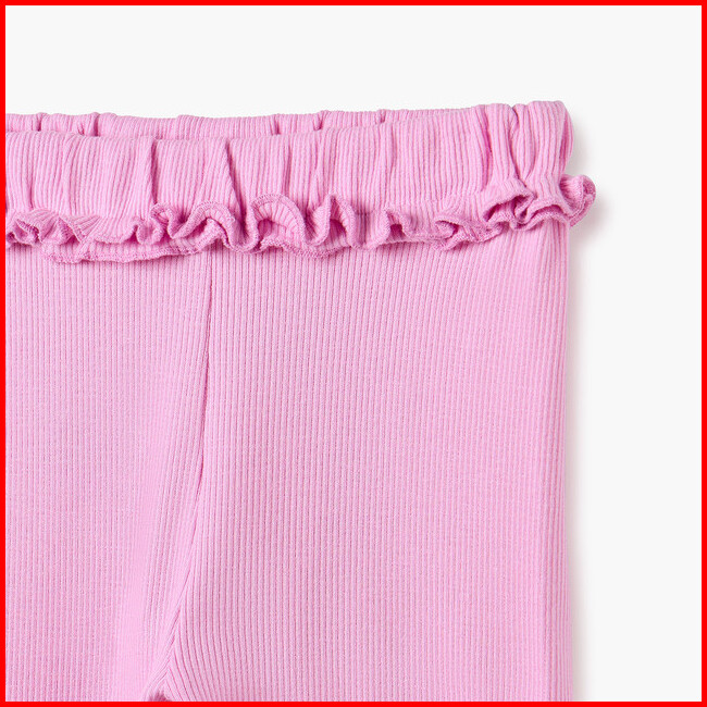 Babyshop Juniors Celana Anak Perempuan Ribbed Leggings With Lettuce Hem And Ruffled Waistband - Pink