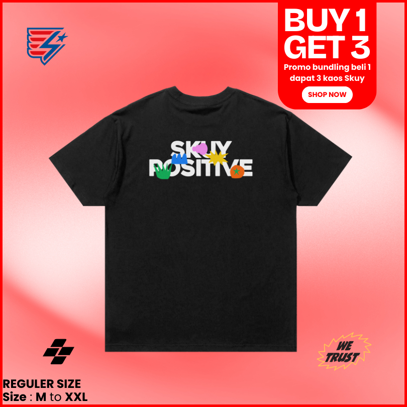 Skuy Buy 1 Get 3 - Kaos Skuy Dewasa Lengan Pendek Baju Pria Bahan Katun Combed 24s Kerah Bulat Positive Sky393 Goals Sky