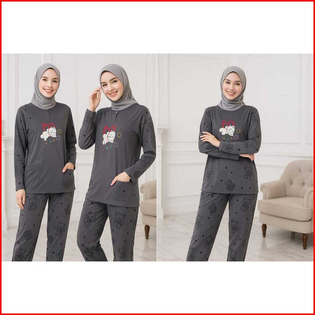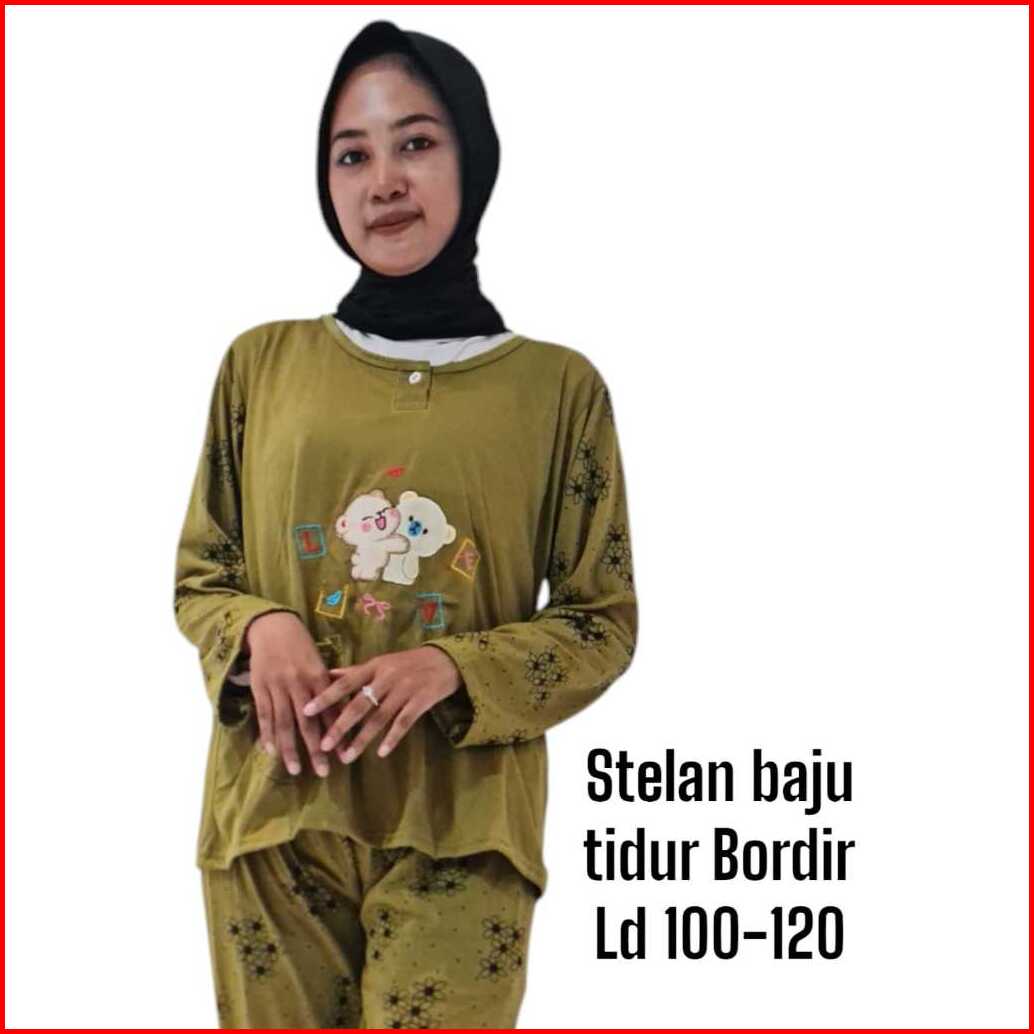Stelan Baju Tidur Bordir Muslimah Kaos Pp Babydoll Celana Panjang Lengan Panjang Wanita