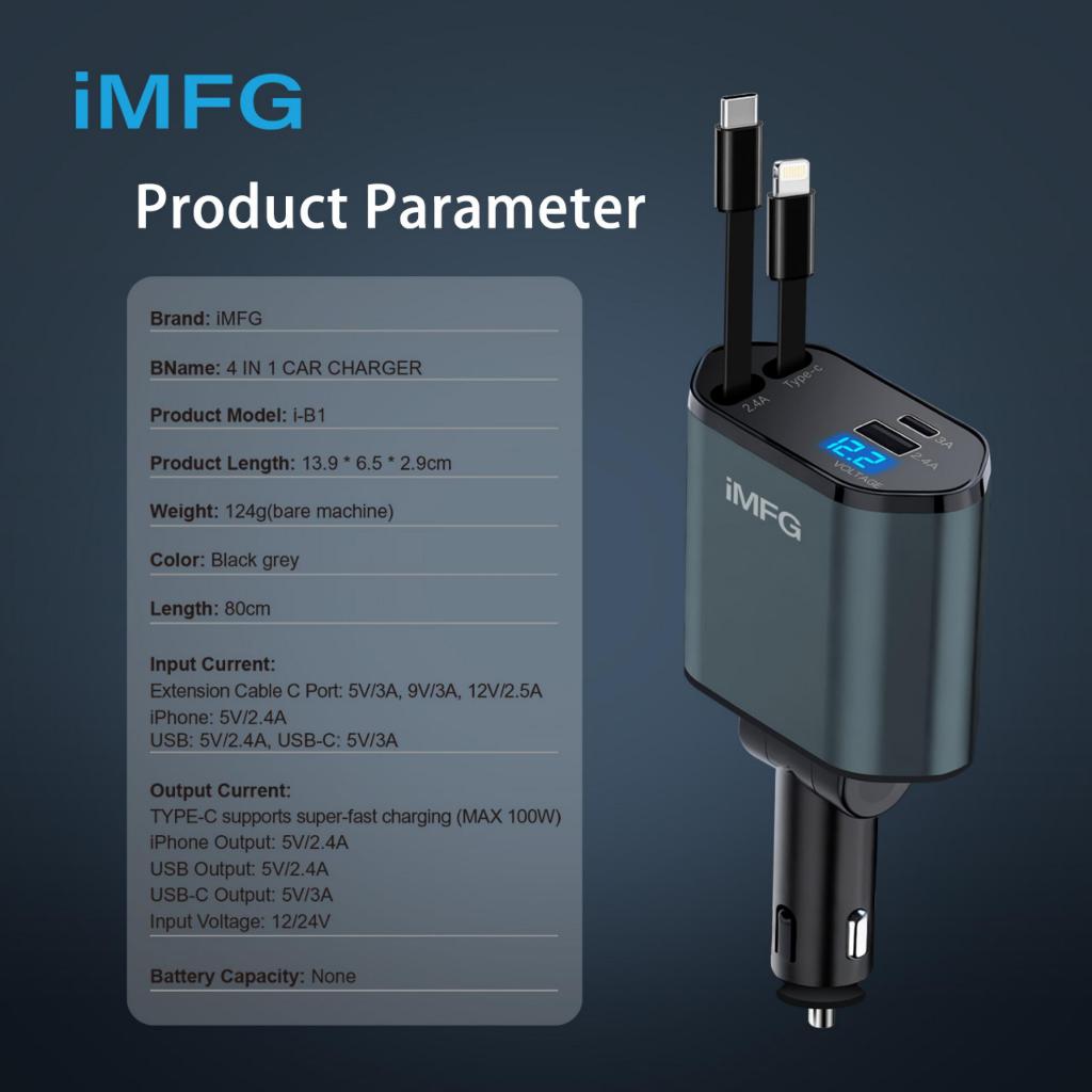 [Star] iMFG Car Charger Pengisi Daya Mobil 4 Port PD 100W USB Type-C & Lightning Fast Charging