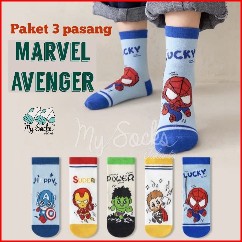 Kaos Kaki Anak Laki-laki Motif Spiderman Superhero 2-4 Th 4-6 Th 7-10 Th Paket 3 Pasang