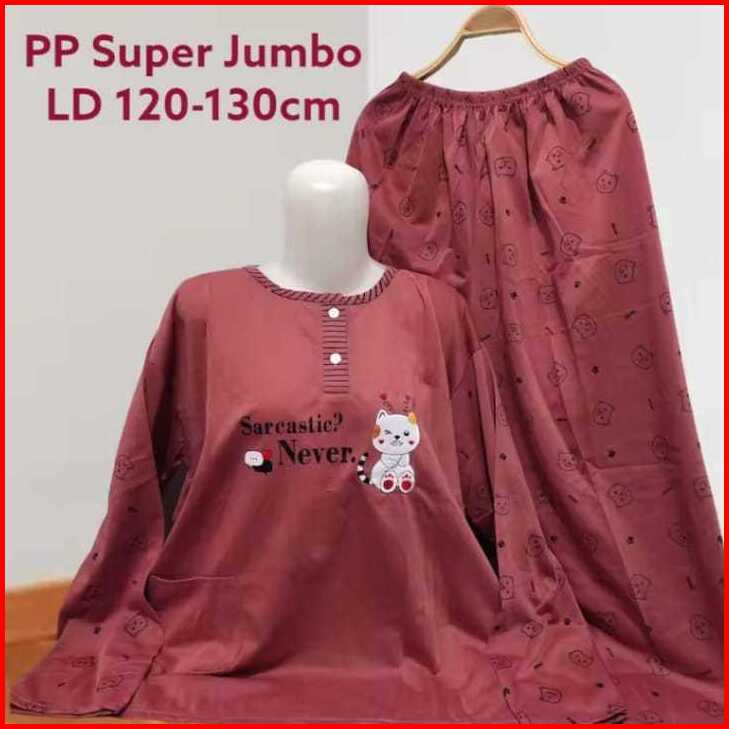 Setelan Baju Tidur Panjang-panjang Wanita Dewasa Jumbo Bahan Kaos