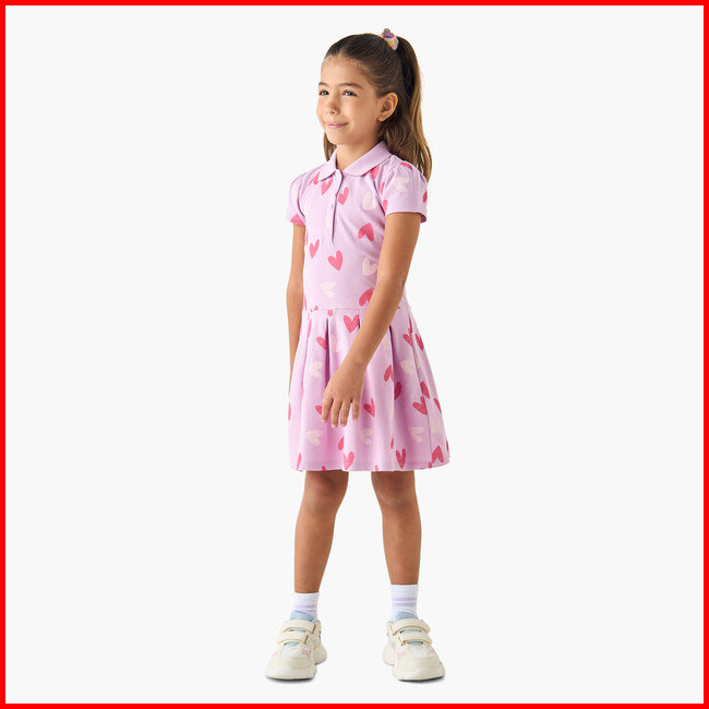 Babyshop Juniors Baju Anak Perempuan Slogan Applique Polo Dress With Short Sleeves - Pink