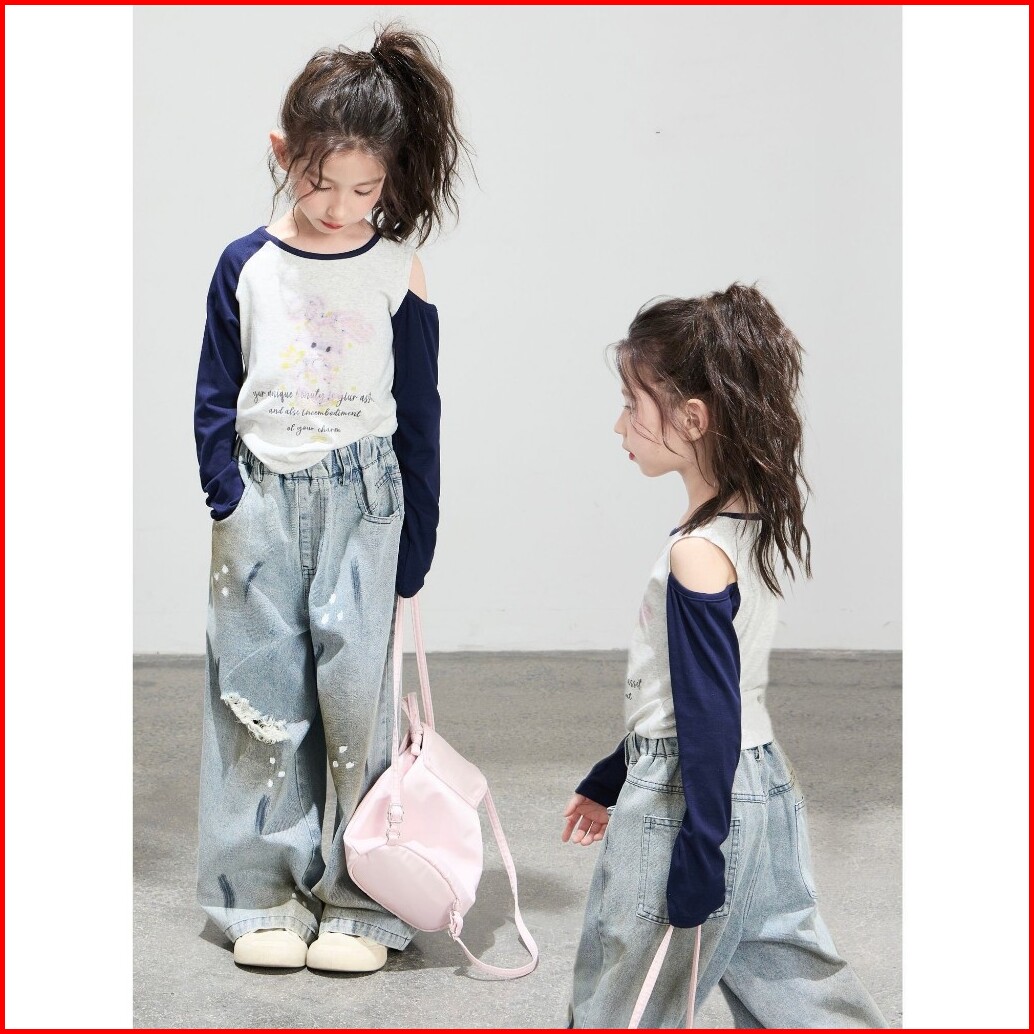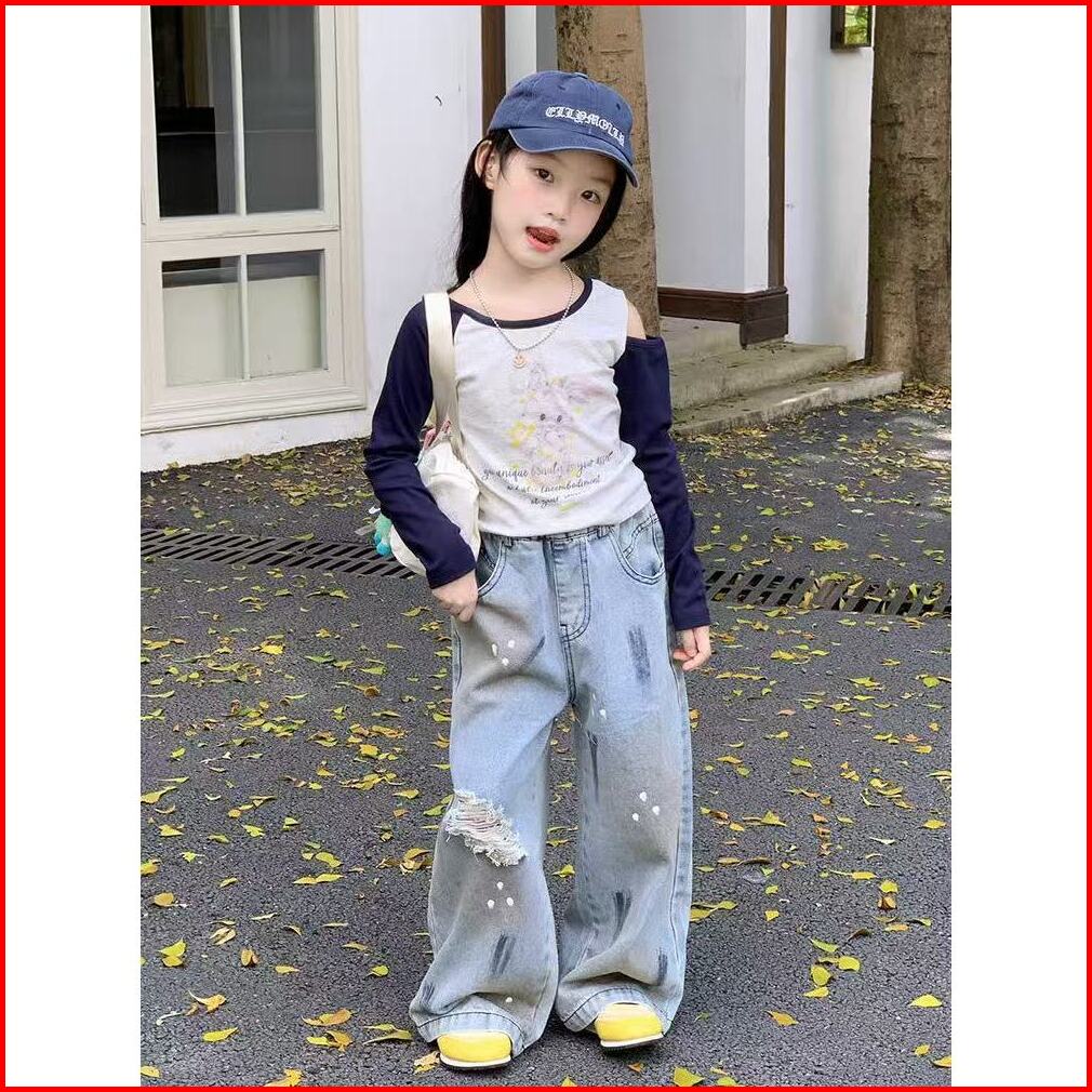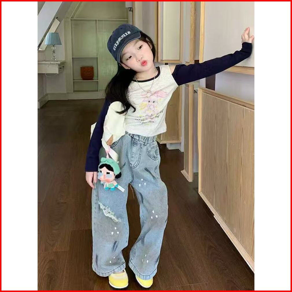 Ootd Anak Perempuan Kekinian Setelan Anak Perempuan One Set Anak Cewek Atasan Celana Jeans Kulot