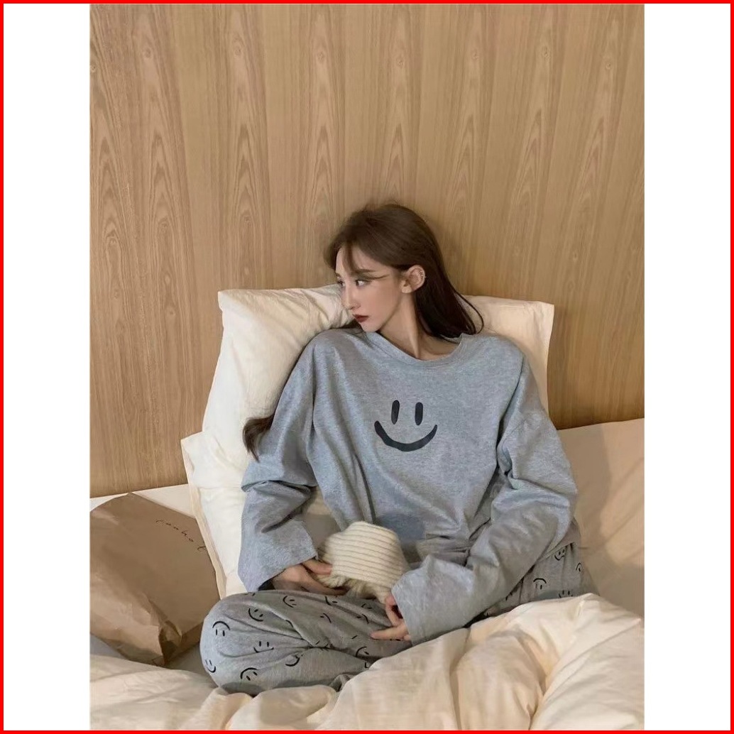 Baju Tidur Piyama Wanita Don Young Sleepwear Lengan Panjang Celana Panjang Motif Polos Setelan Kasual Aesthetic