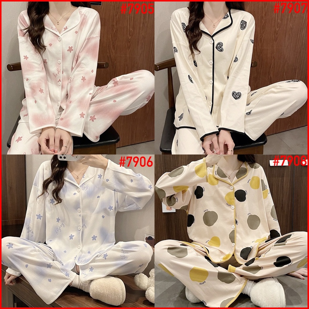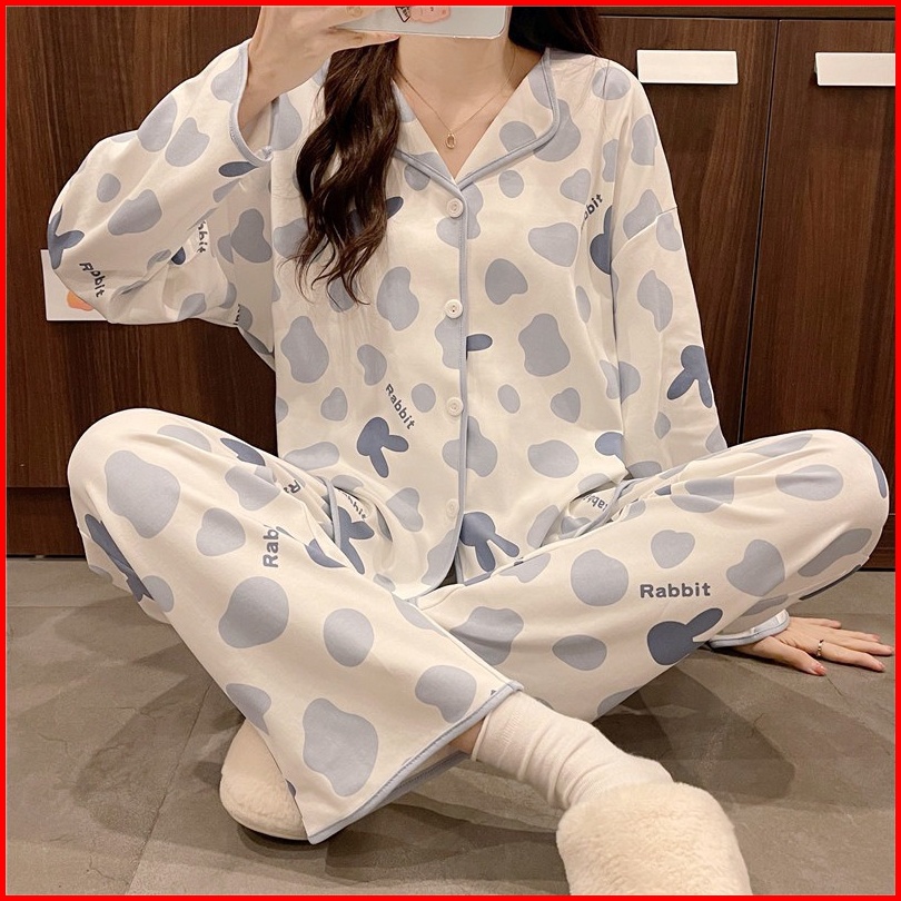 Premium Piyama Jumbo Baju Tidur Wanita Big Size Kkum Pp Import Korea Fashion Kerah Kancing Lengan Panjang Celana Panjang