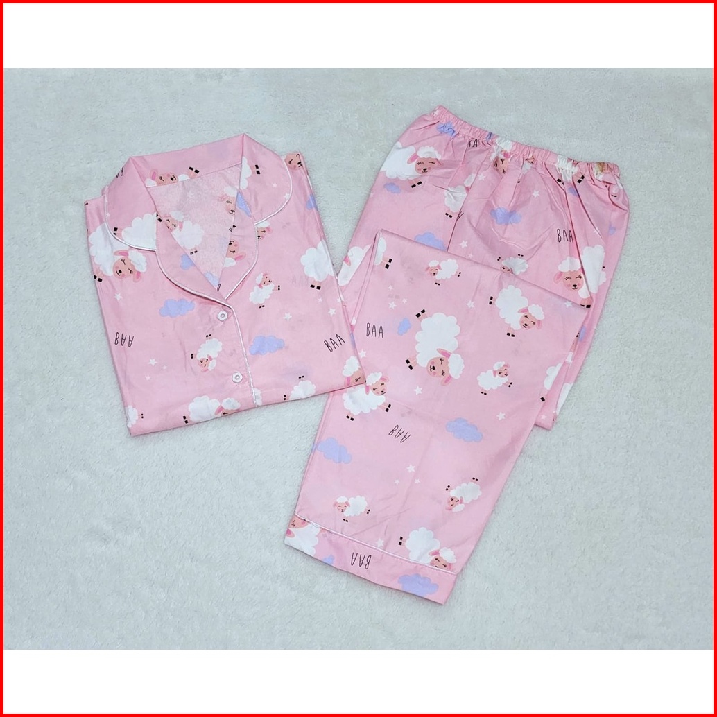 Baju Tidur Motif Baa Baa Domba Piyama Corak Domba Pajamas Lengan Pendek Lengan Panjang