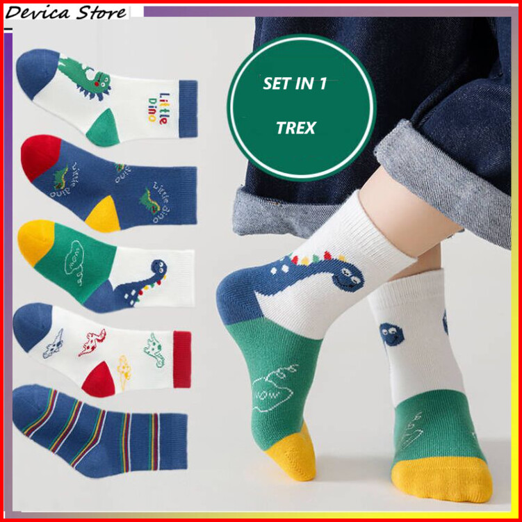Devica Set 5 Pasang Kaos Kaki Anak Laki Laki Motif Kartun Karakter Lucu Imut