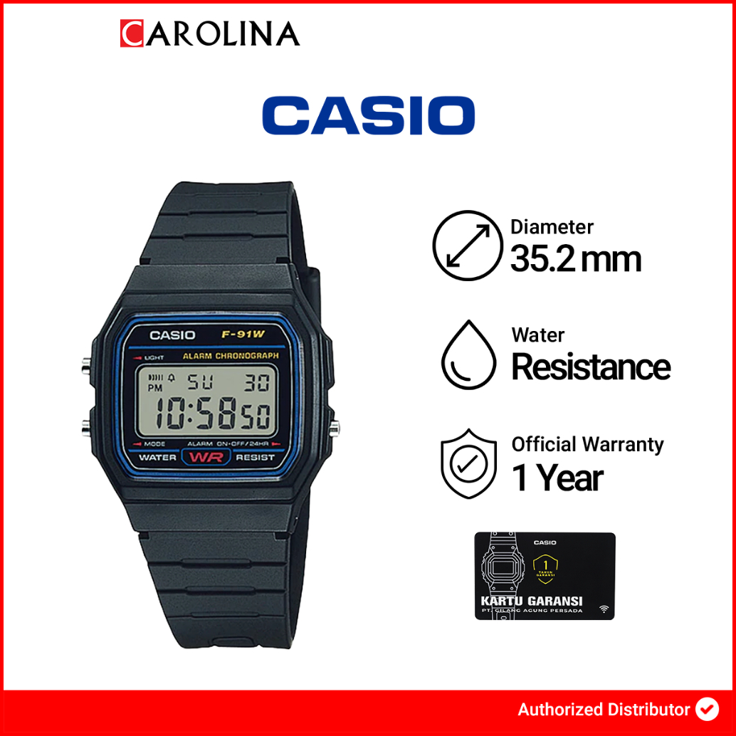 Jam Tangan Casio General F-91w-1d Classic Digital Dial Black Resin Band