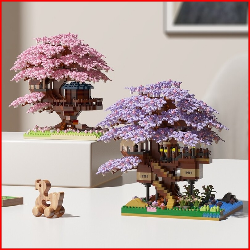 2229pcs Pohon Sakura Bricks Bunga 3d Tree House Puzzle Mainan Blok Bangunan Mainan Anak Hadiah Lucu Buat Cewek