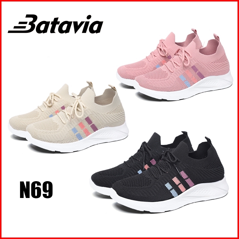 Batavia Sepatu Sneakers Wanita Polos Praktis Sporty Style Bahan Flyknit Lentur Elastis N69