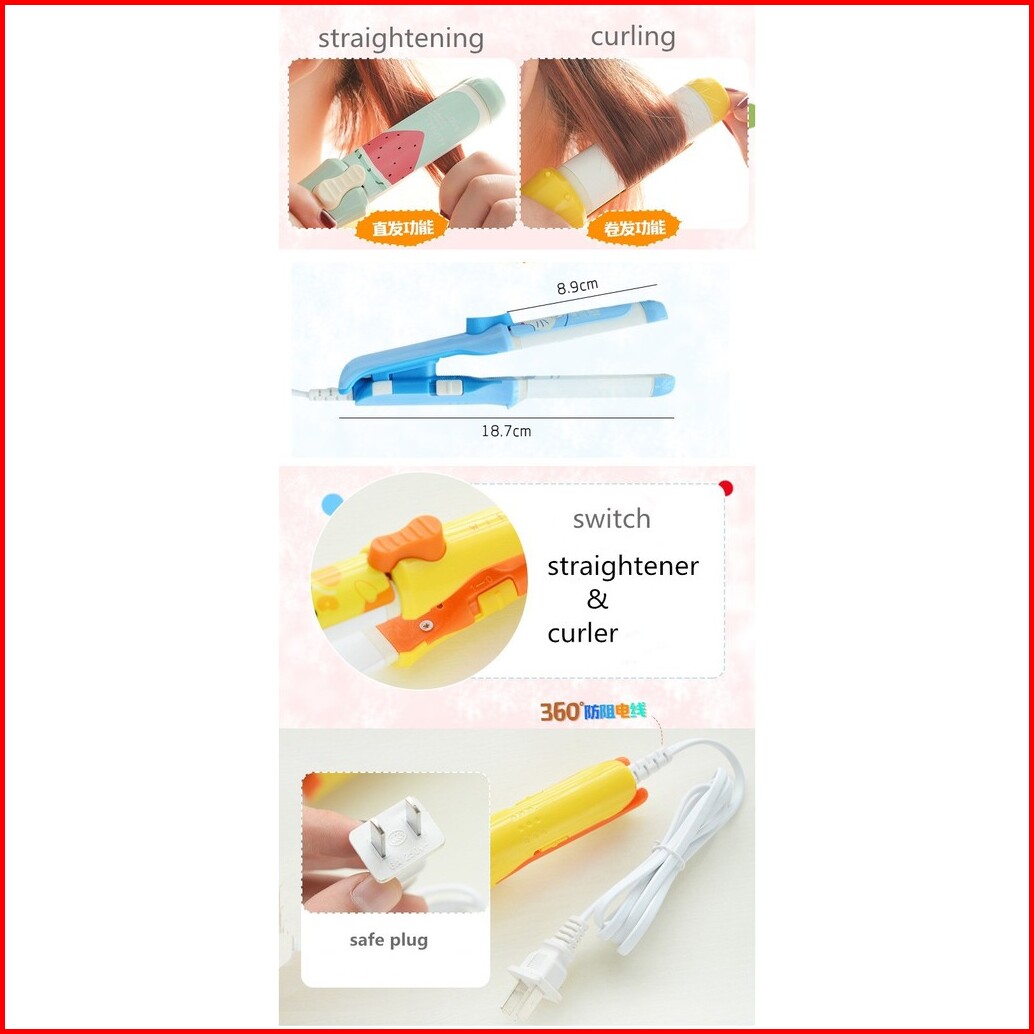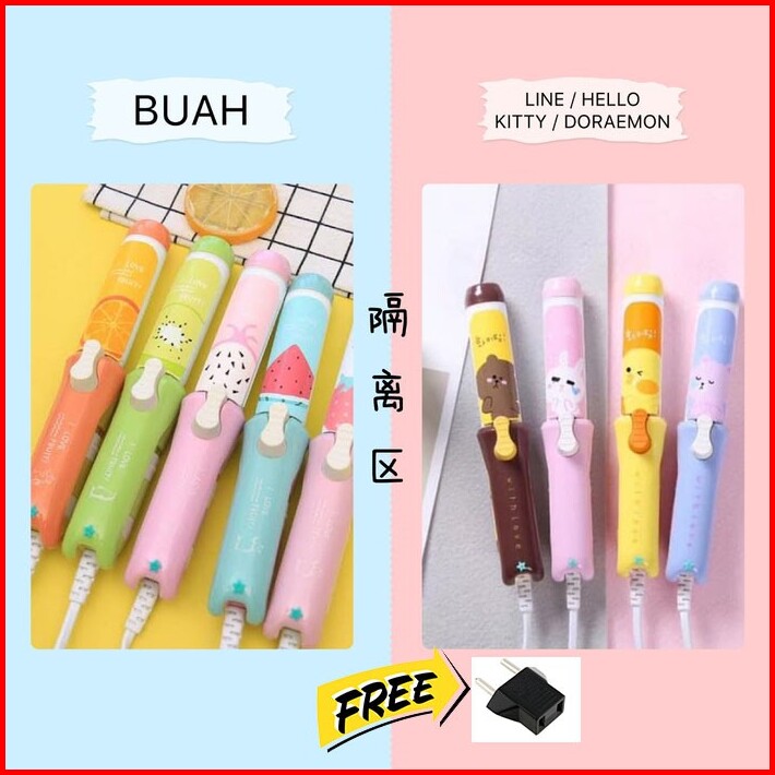 Catokan Rambut Mini Hello Kitty Doraemon - Alat Catok Lurus Curly Keriting Hair 2in1 Buah Fruit