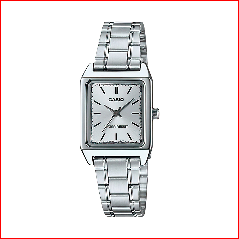 Jam Tangan Wanita Casio General Ltp-v007d-7e Tank Silver Dial Stainless Steel Band