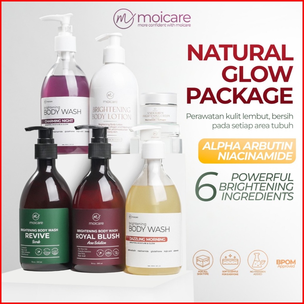 Moicare 3 Paket Pencerah Brightening Lotion Underarm Whitening Bodywash Whitening Paket Super Hemat Moicare Paket Pemuti
