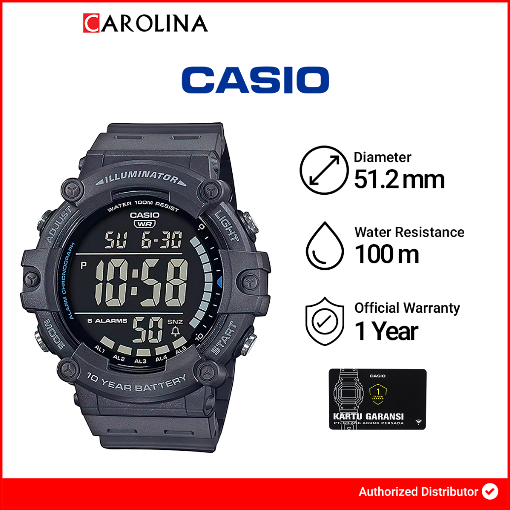 Jam Tangan Pria Casio General Ae-1500wh-8b Black Digital Dial Grey Resin Band