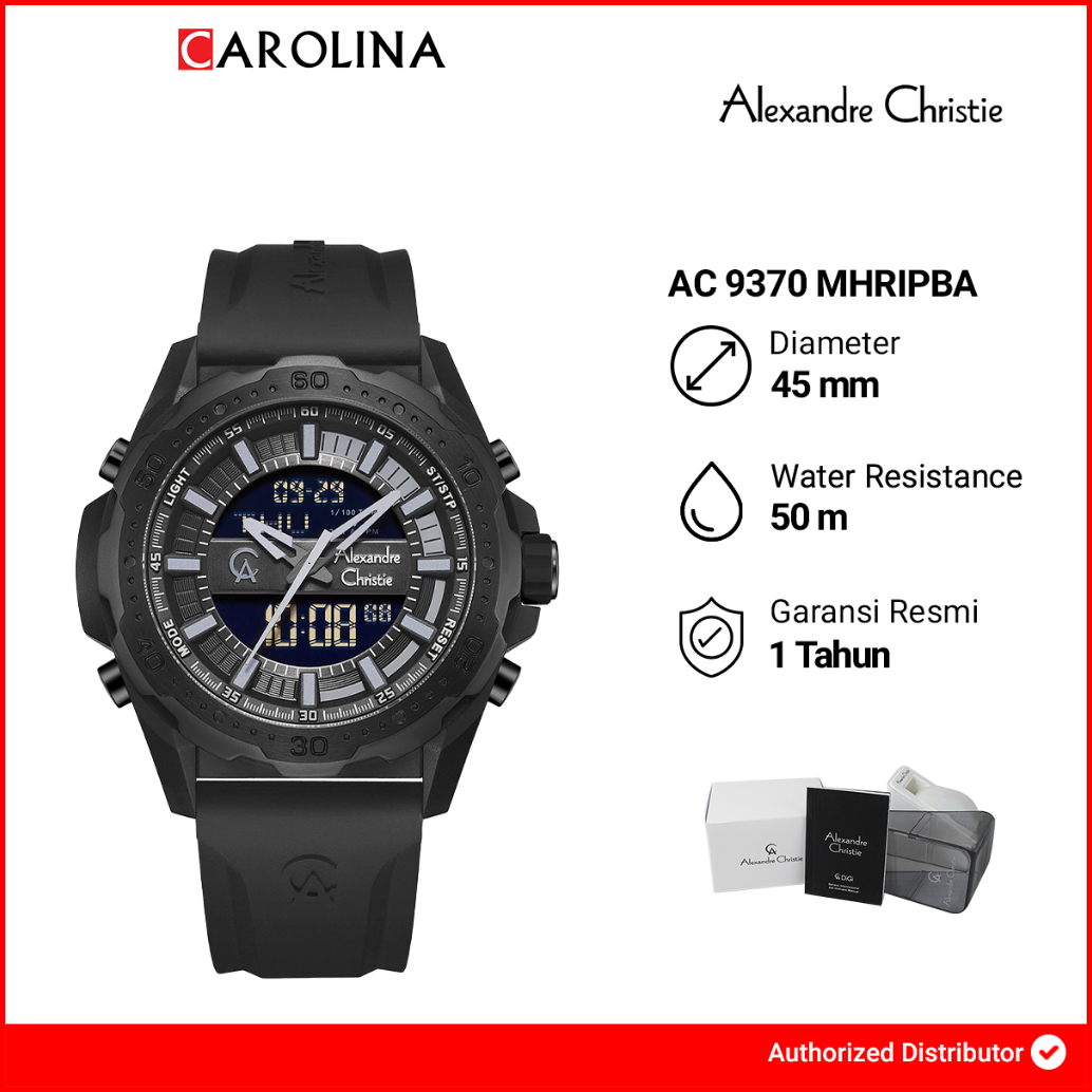 Jam Tangan Pria Alexandre Christie Digi Ac 9370 Mhripba Digital Analog Dial Black Rubber Strap