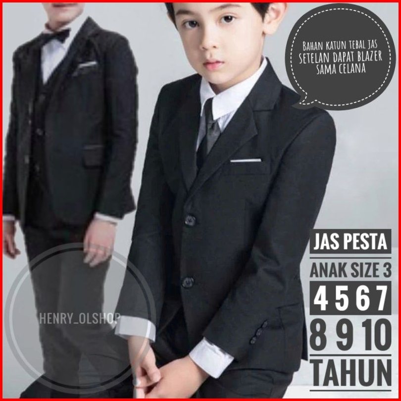 Jas Pesta Anak Cowok Warna Hitam Black Setelan Dapat Blazer Sama Celana Bahan Katun Tebal Original Indonesia Baru Ori Ba