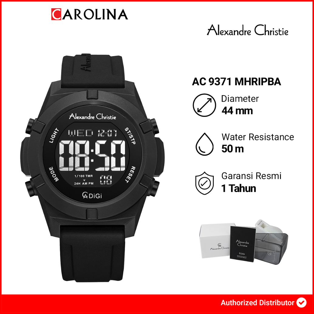 Jam Tangan Pria Alexandre Christie Digi Ac 9371 Mhripba Black Digital Dial Black Rubber Strap