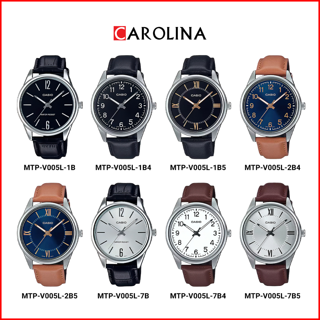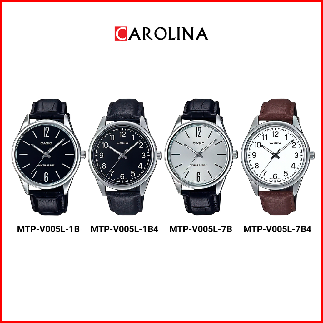 Jam Tangan Pria Casio General Mtp-v005l-7b Silver Dial Black Leather Strap