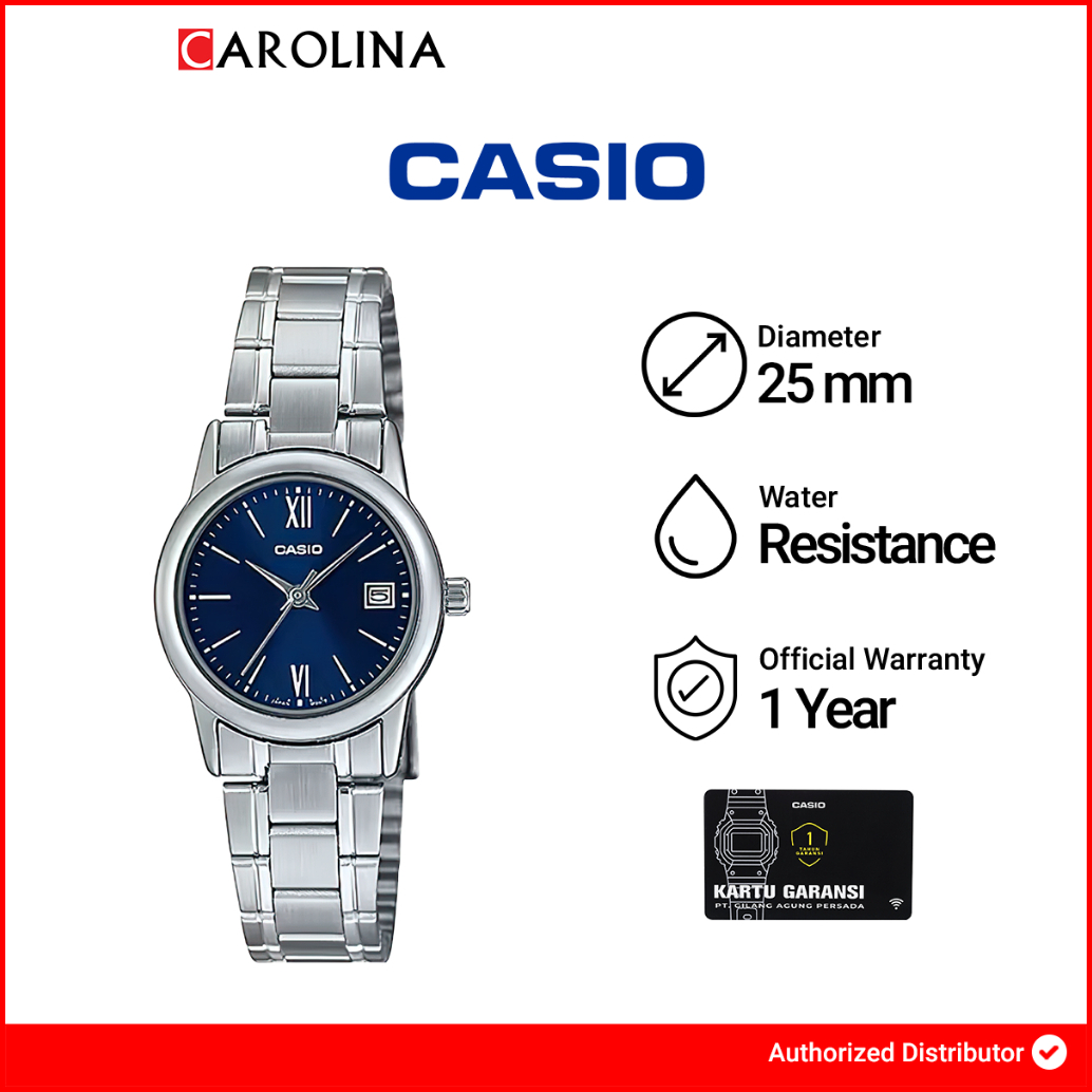 Jam Tangan Wanita Casio Ltp-v002d-2b3 Analog Dark Blue Dial Stainless Steel Band