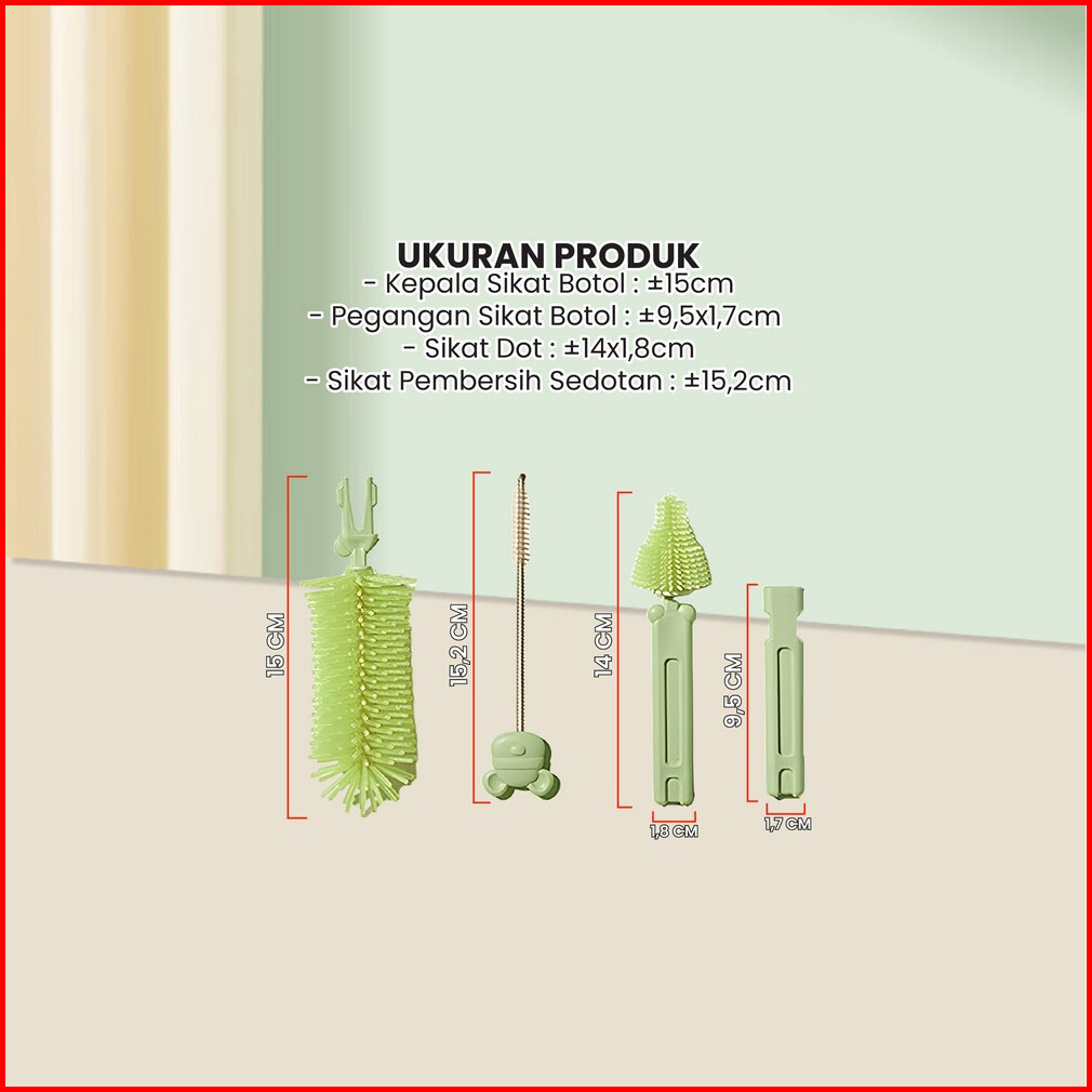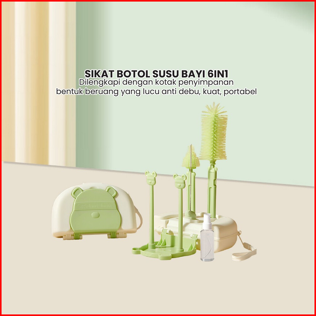 Sikat Botol Susu Bayi 6in1 Dengan Rak Pengering Botol Portable Set Bottle Brush Set Drying Rack Bear Travel Stockami C10