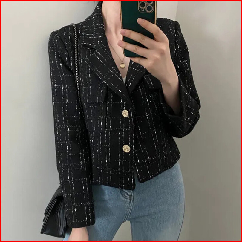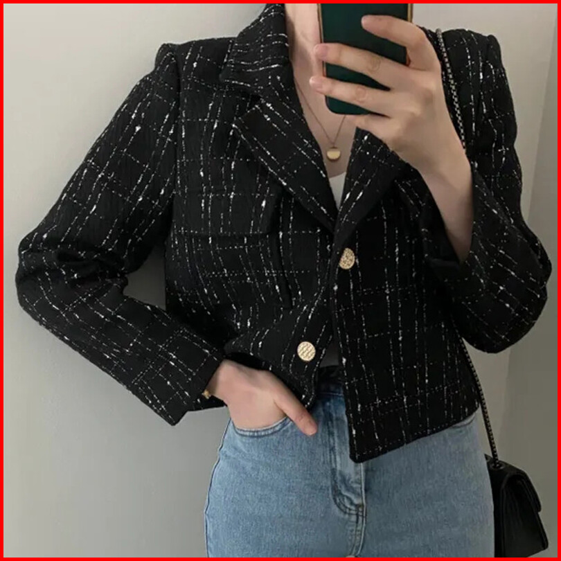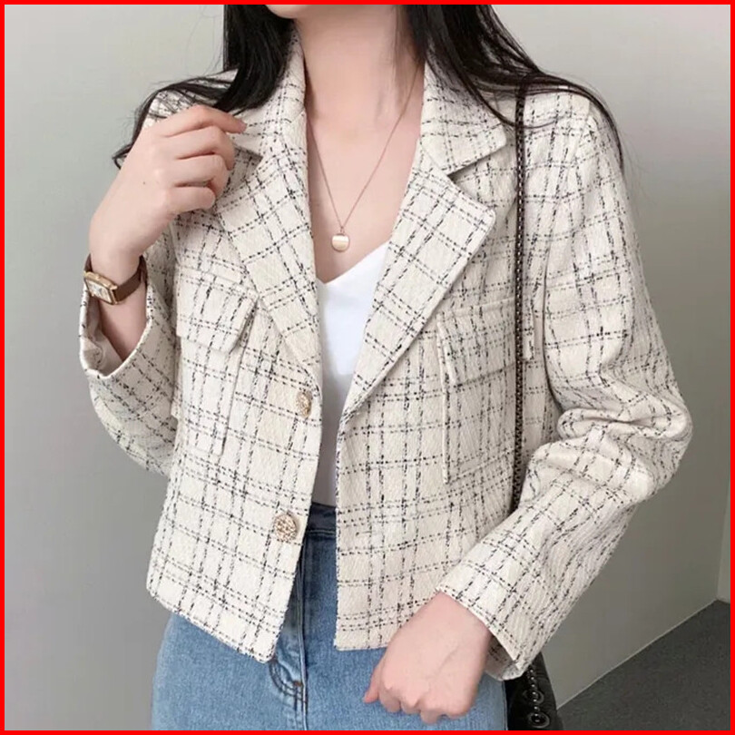 Misco Blazer Crop Wanita Lengan Panjang Jaket Cardigan Wanita Terbaru Kerah V Wanita Blazer
