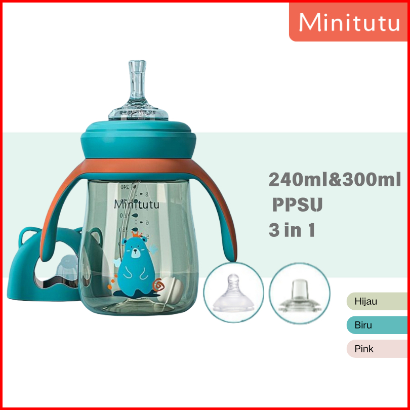Minitutu Botol Susu Bayi Training Cup 6 Bulan Botol Minum 3in1 Ppsu Botol Anti Tumpah Bpa Free Bb16