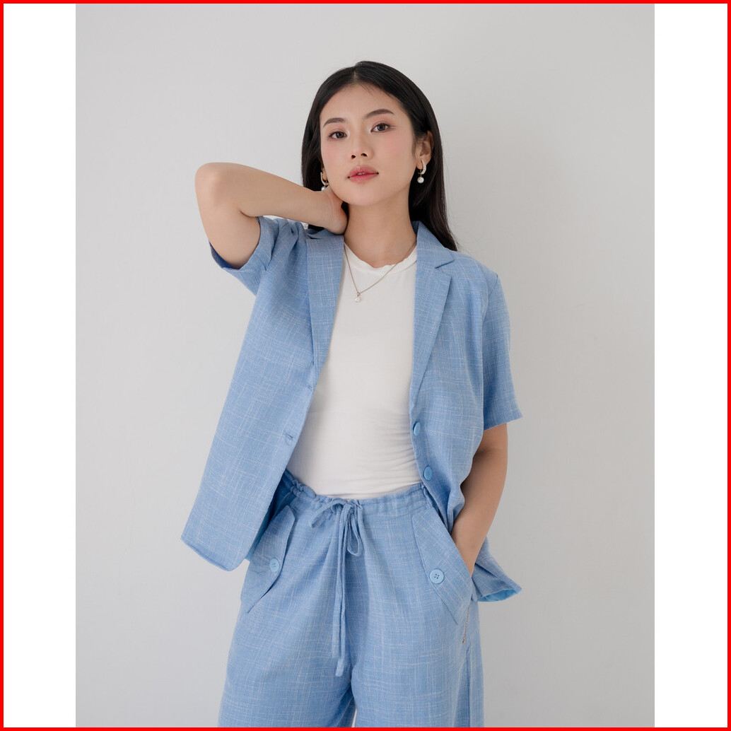 Ves - Sohee Blazer In Blue - Outer Atasan Blazer Lengan Pendek Size S-l