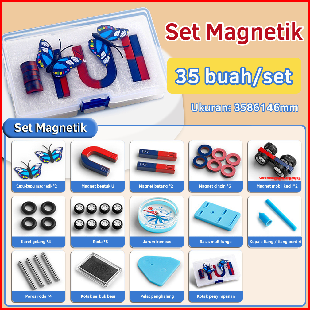Jojotoy 52pcs Set Mainan Magnet Sains Edukasi Eksperimen Anak Sains Medan Magnetic Sekolah Rumah