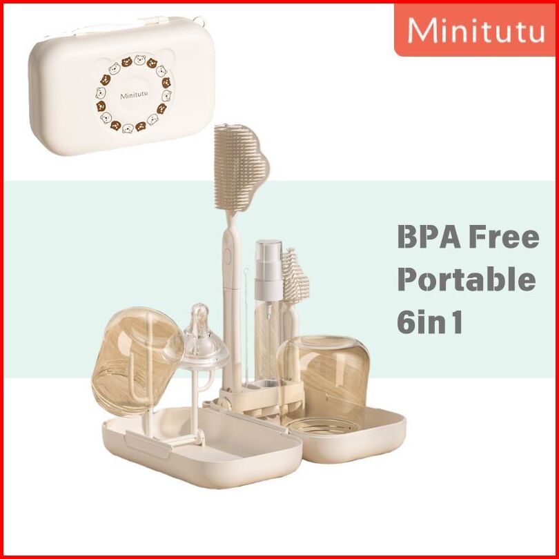 Minitutu Sikat Botol Portable Travelling 6in1 Pembersih Botol Bayi Bpa Free Silikon Xh15