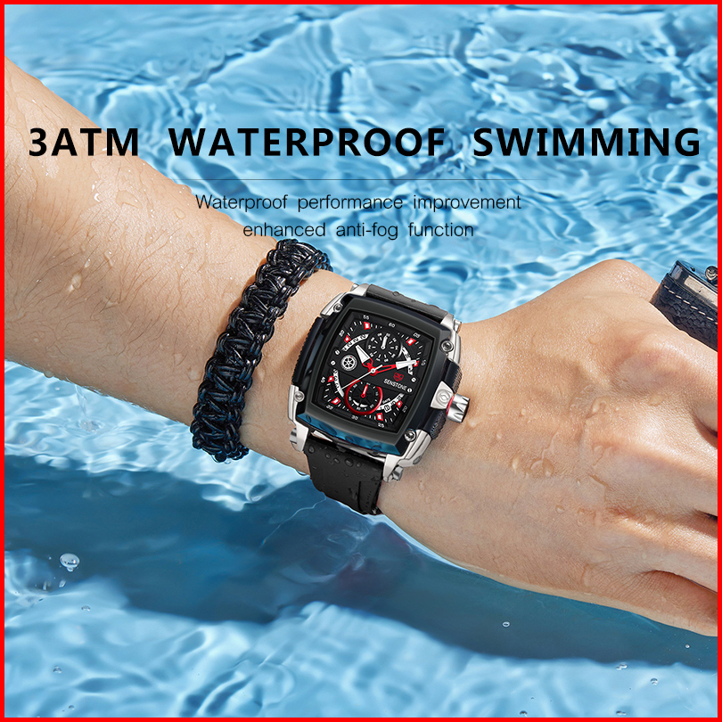 Senstone Jam Tangan Priaterbaru Asli Anti Air Kalender Bercahaya Mewah Hitam Mewah Baja Tahan Karat Jam Pria Kotak Hadia