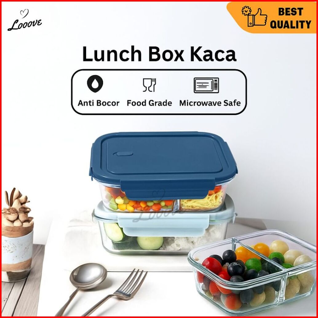 Lunch Box Kaca Anti Bocor 100 Kotak Bekal Kedap Udara Food Grade Oven Microwave Safe Glass Meal Prep Container