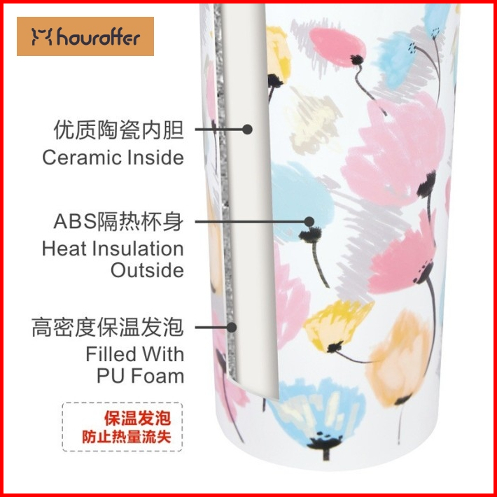 Houroffer Botol Minum Keramik Hm-8442 Blue Pink 250ml Bpa Free