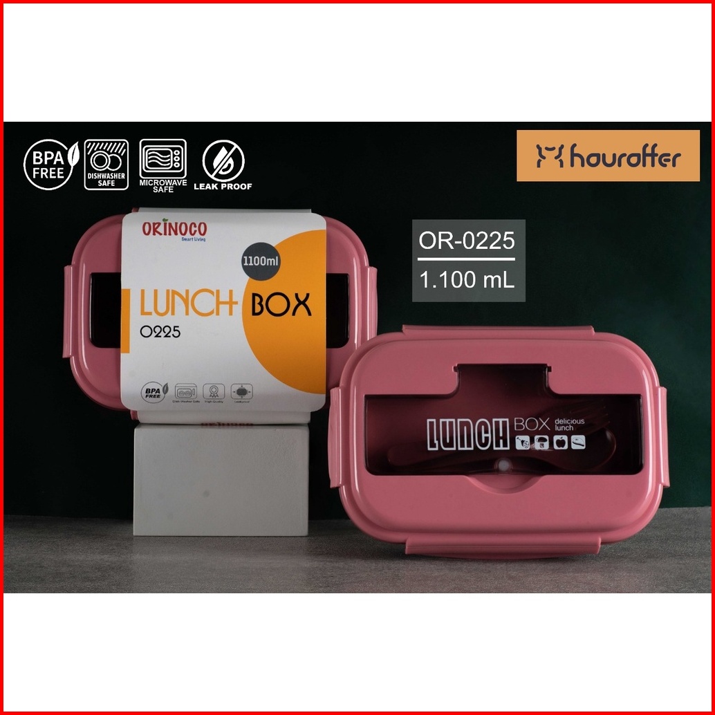 Houroffer Lunchbox Or-0225 Pink Microwavable Anti Tumpah 3 Sekat Sendok Garpu - Bpa Free 1100ml