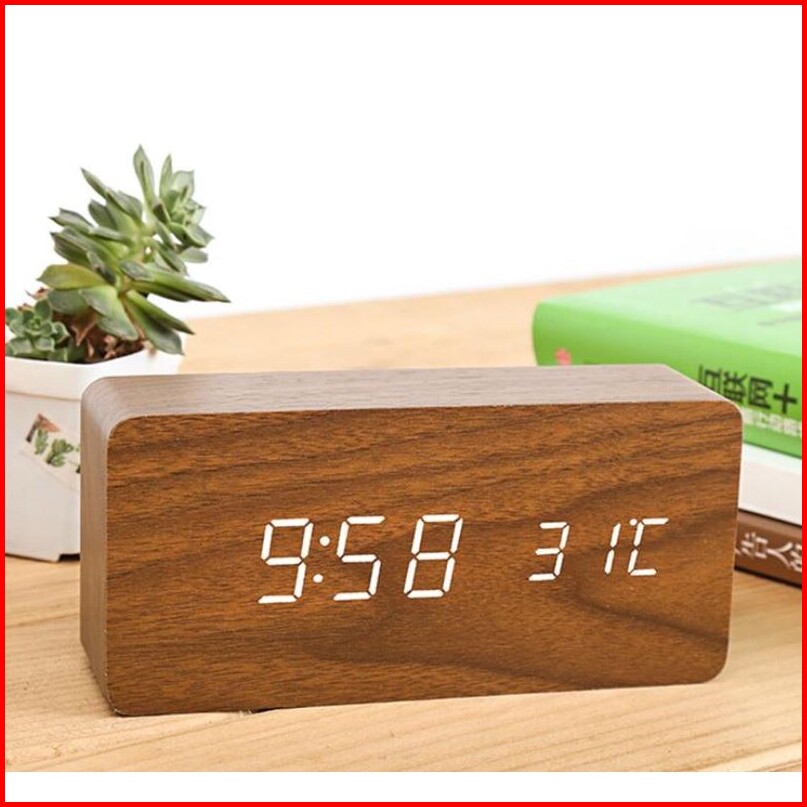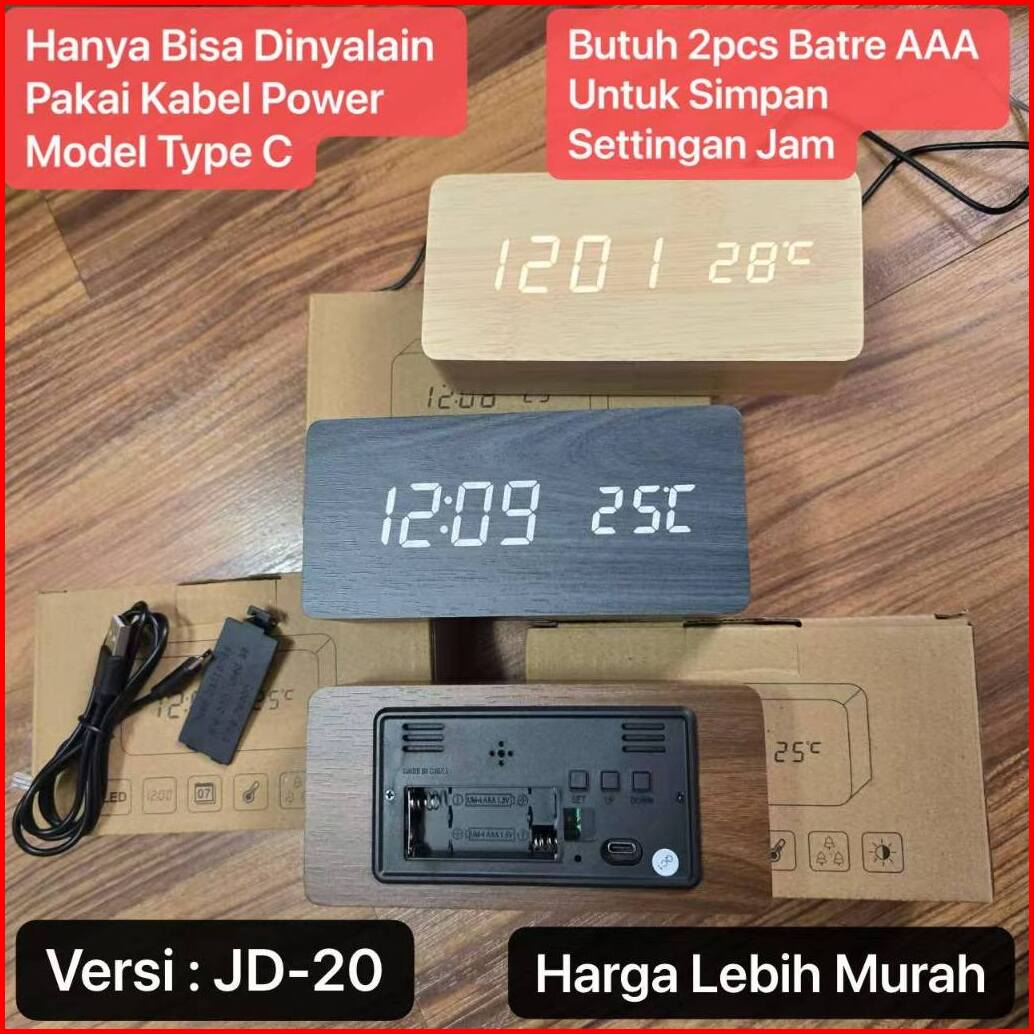 Jam Kayu Digital Led Jam Weker Desain Wood Alarm Led Clock Waker Suhu Jam Meja