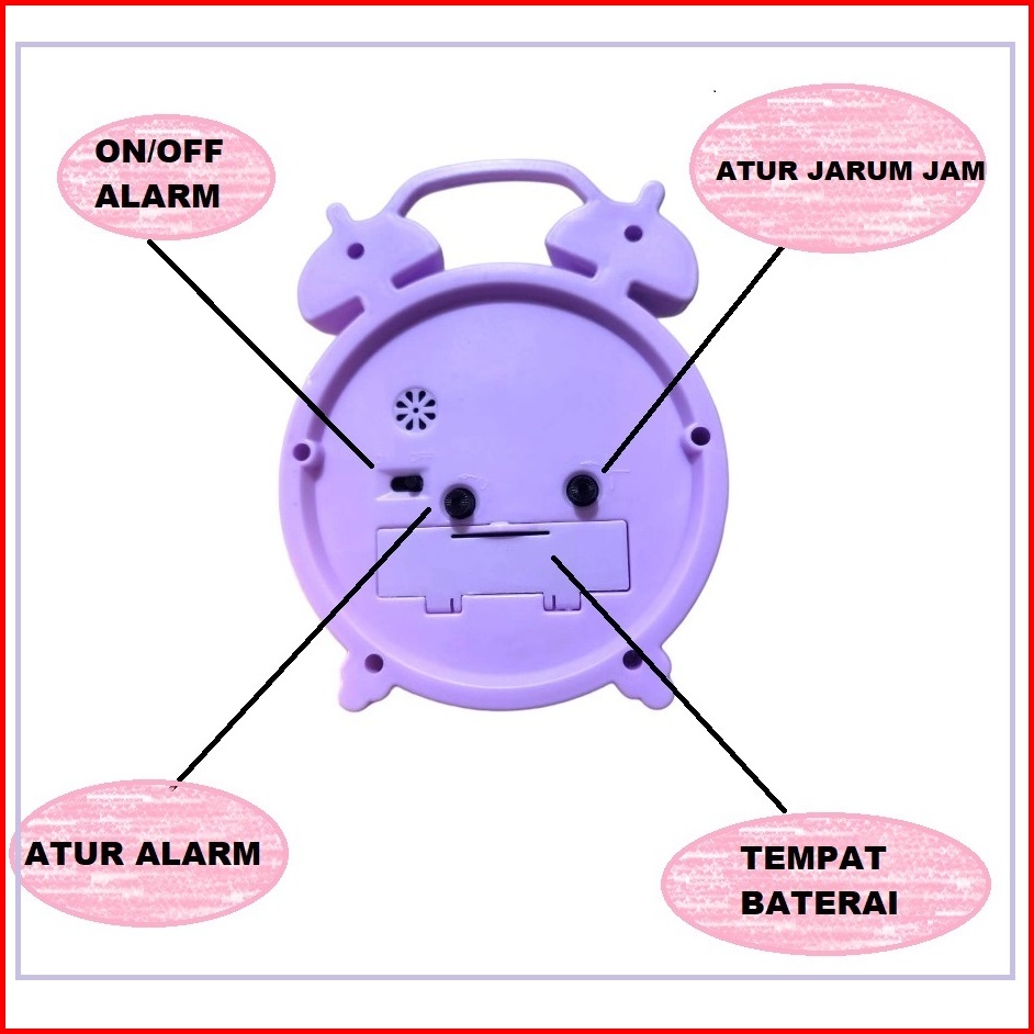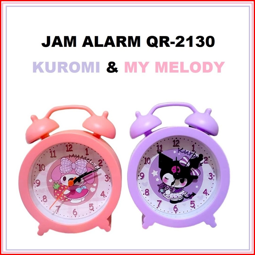 Jam Fashion Alarm Karakter Sanrio Qr-2130 Free Baterai Jam Meja Beker Weker Clock My Melody Kuromi Pink Ungu Kawaii Hell