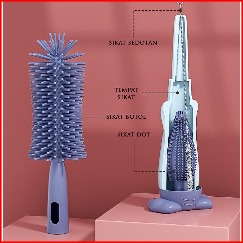 Sikat Botol Dot Susu Bayi 3in1 Silicone Sikat Pembersih Dot Bayi Sedotan 3in1