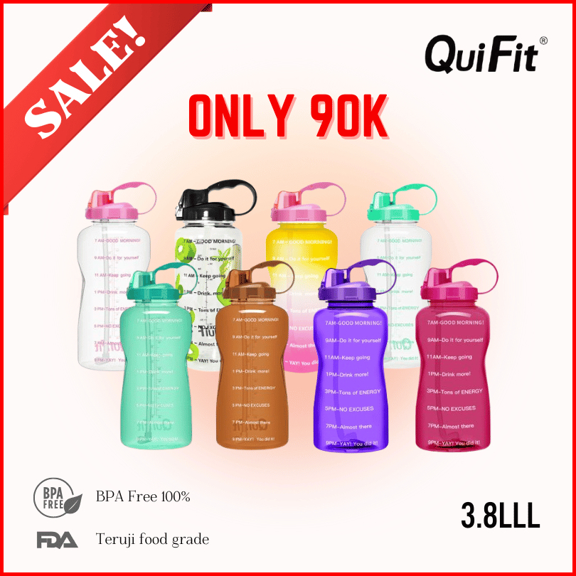 Quifit - 3.8lll Botol Air Minum Tritan Motivasi 3.8l Dengan Sedotan Pegangan Luas 100 Bpa Free