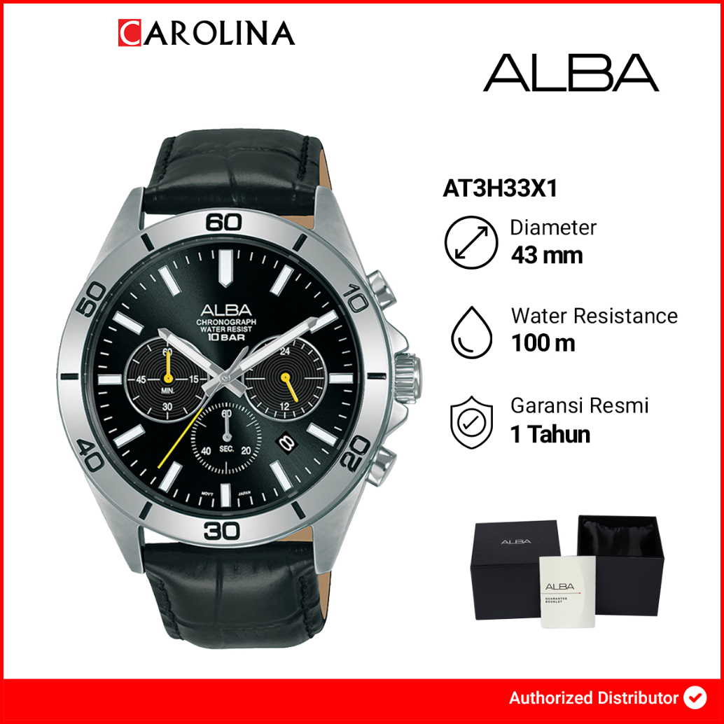 Jam Tangan Pria Alba Active At3h33x1 Black Dial Black Leather Strap