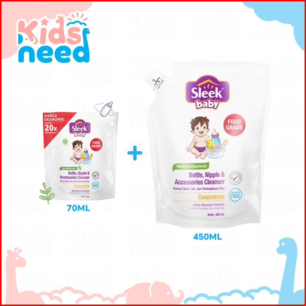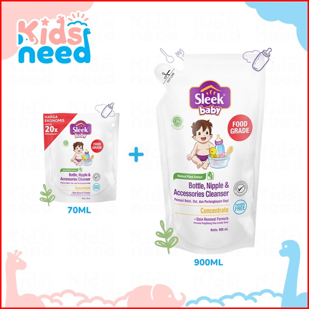 Paket Murah Sleek Baby Bottle Nipple Accessories Cleanser 70ml 450ml 900ml Sabun Cuci Botol Susu