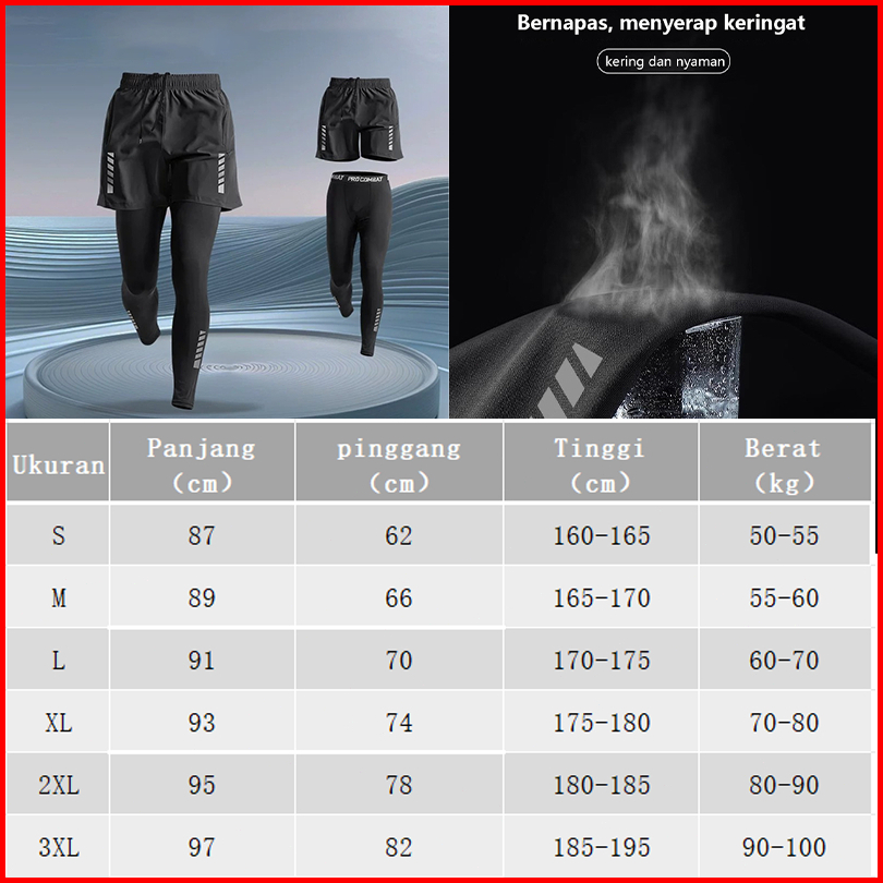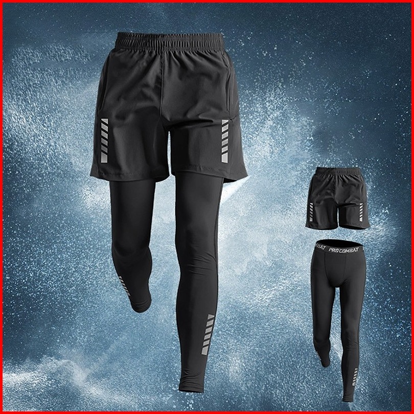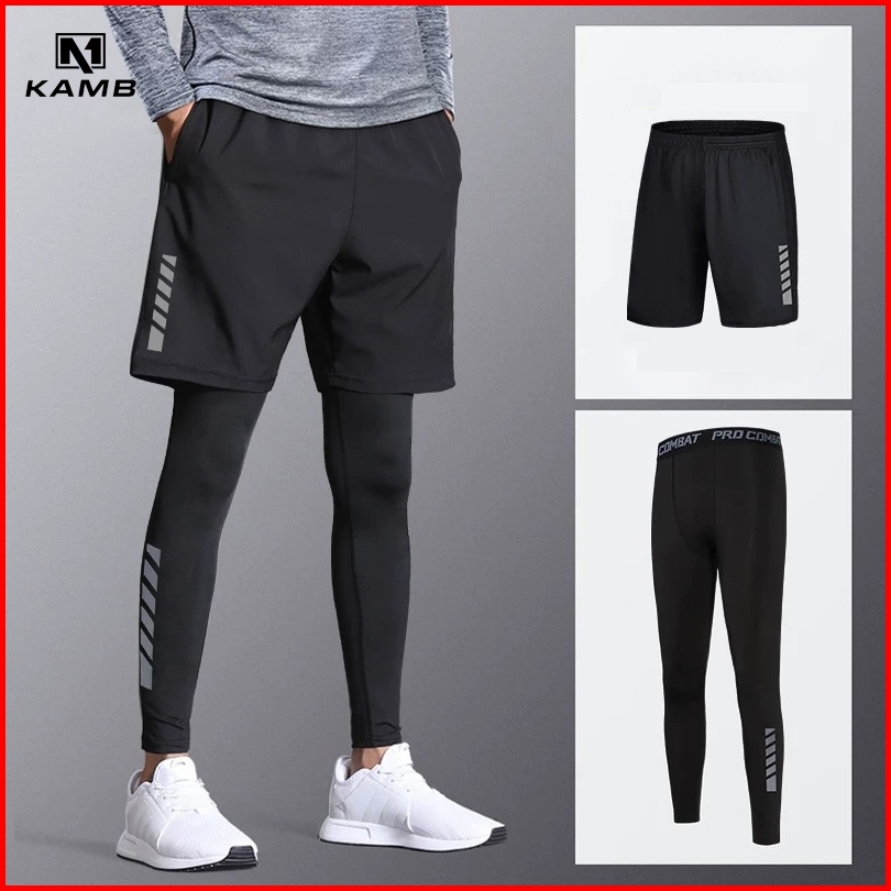 Kamb 2pcs Celana Legging Olahraga Panjang Gym Running Pria Celana Pendek Pria