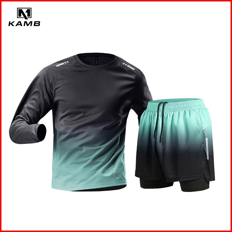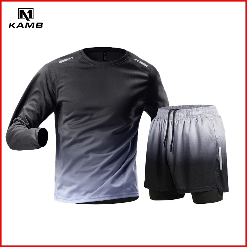Kamb Setelan Kaos Lengan Panjang Pria Training Celana Pendek