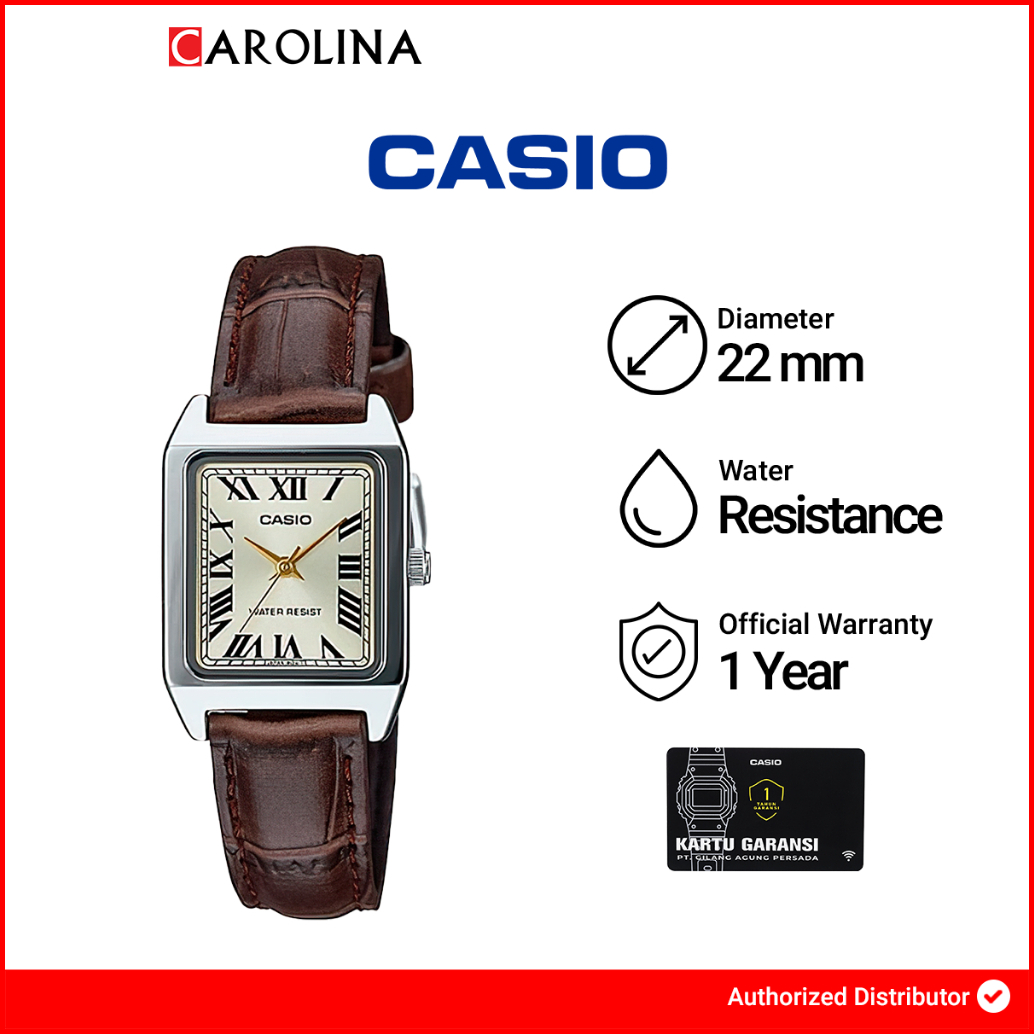 Jam Tangan Wanita Casio General Ltp-v007l-9b Tank Beige Dial Brown Leather Band