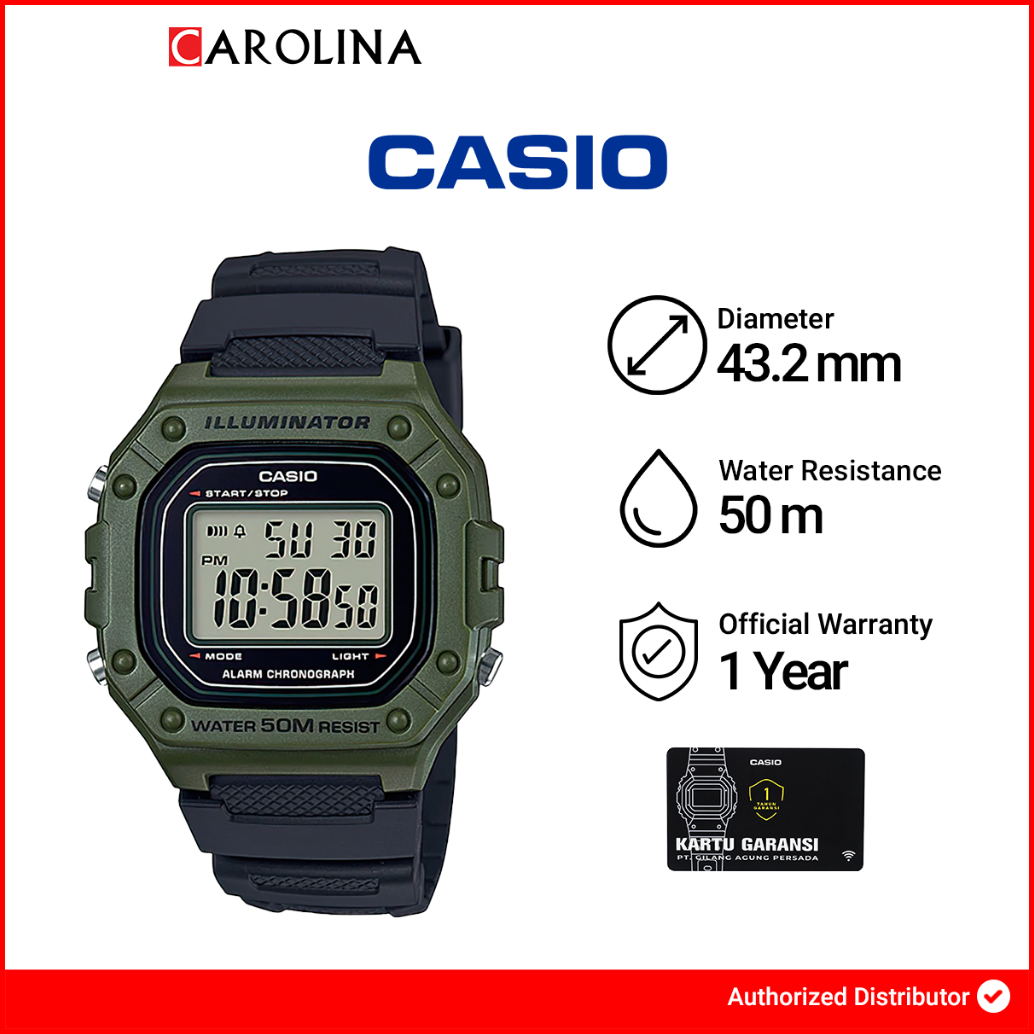 Jam Tangan Pria Casio W-218h-3a Digital Dial Black Resin Band