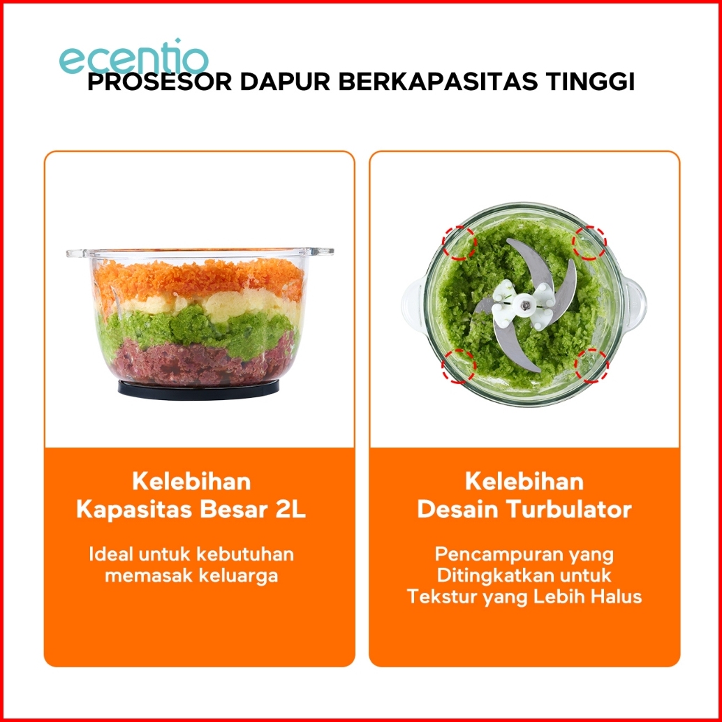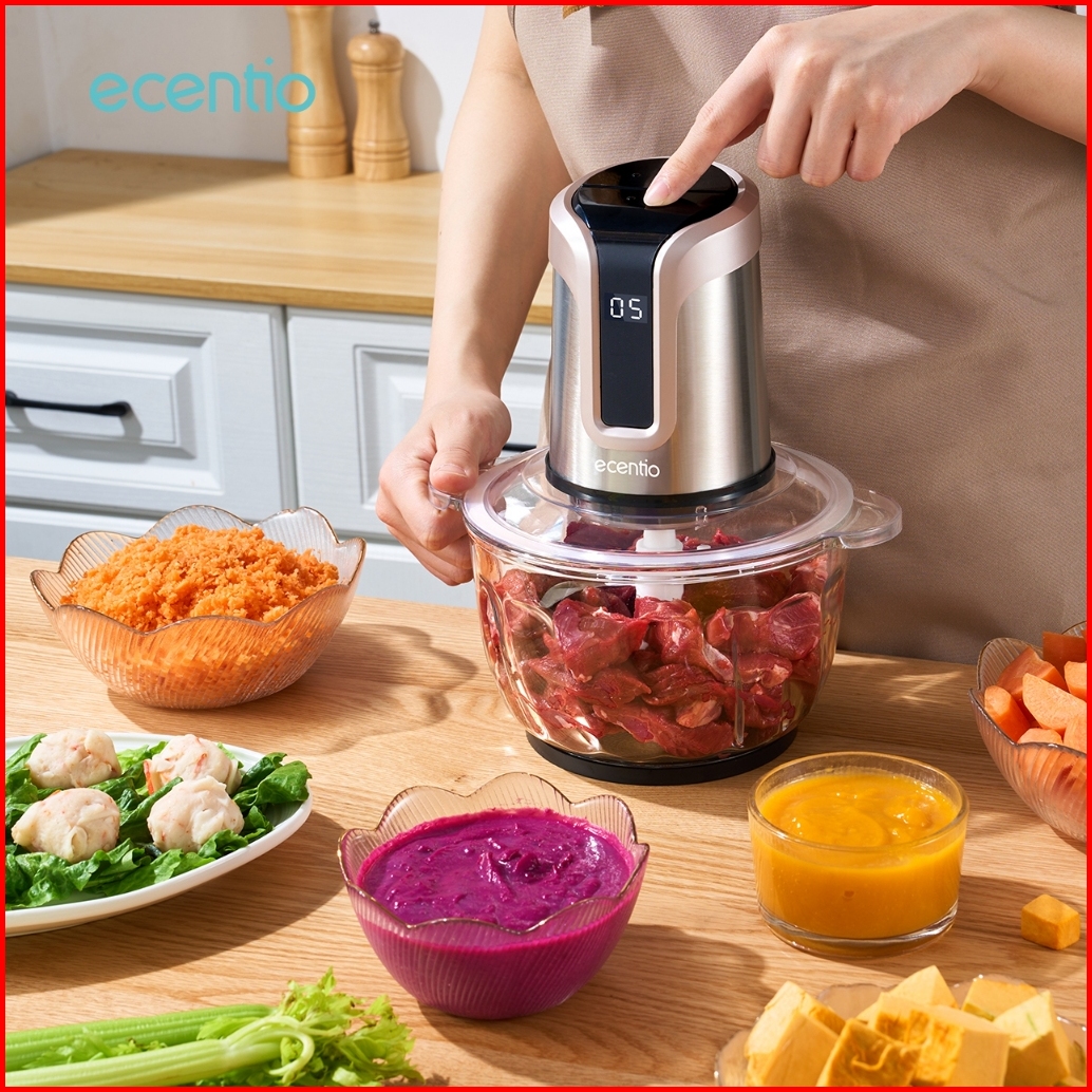 Ecentio 3 Kecepatan Penggiling Daging Led Display Multifungsi Food Processor 2l 6 Mata Pisau Mesin Giling Daging Mpasi B