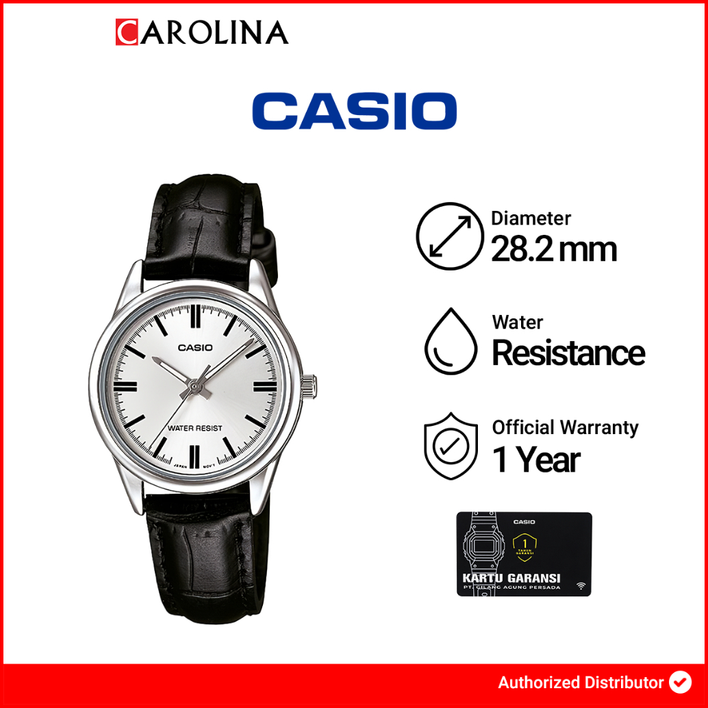 Jam Tangan Wanita Casio General Ltp-v005l-7a Silver Dial Black Leather Band