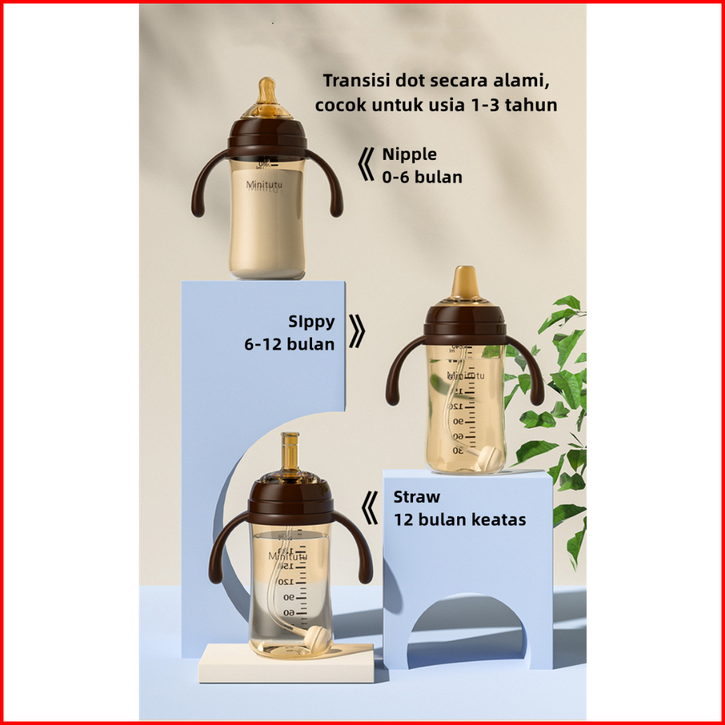 Minitutu Botol Minum Pp Training Cup Botol Susu Nano Perak 3in1 Botol Anti Tumpah Bpa Free Bb15