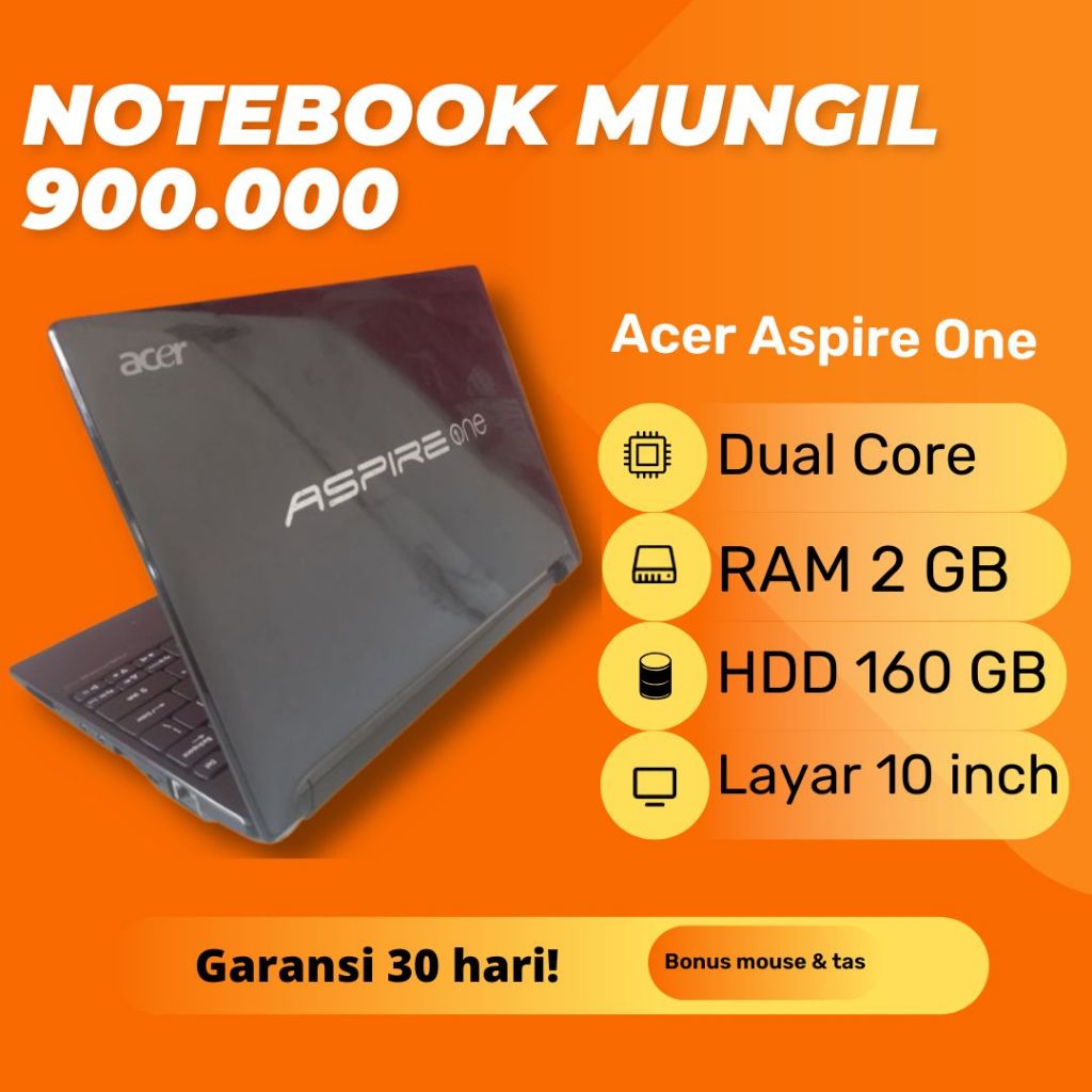 Notebook Acer Aspire One 522 RAM 2GB HDD 160GB AMD C-50 Windows 7 Second Bekas