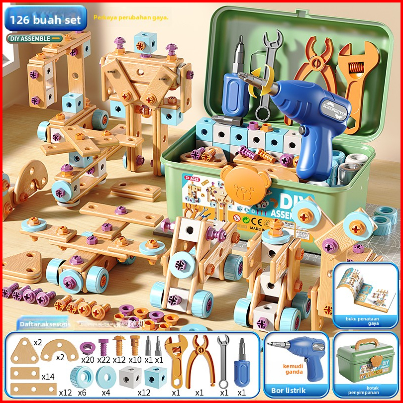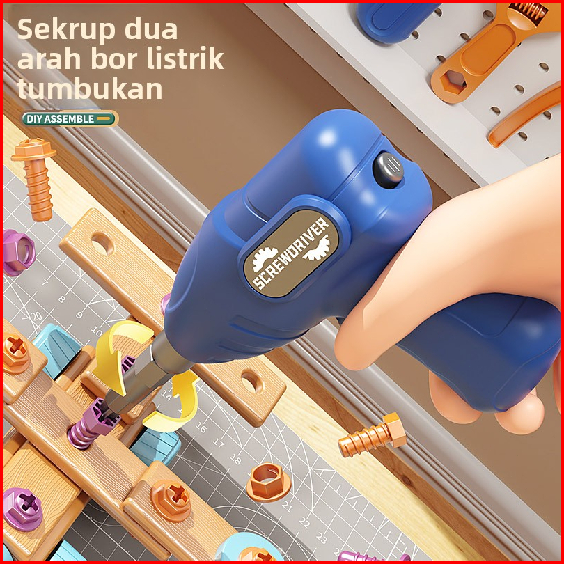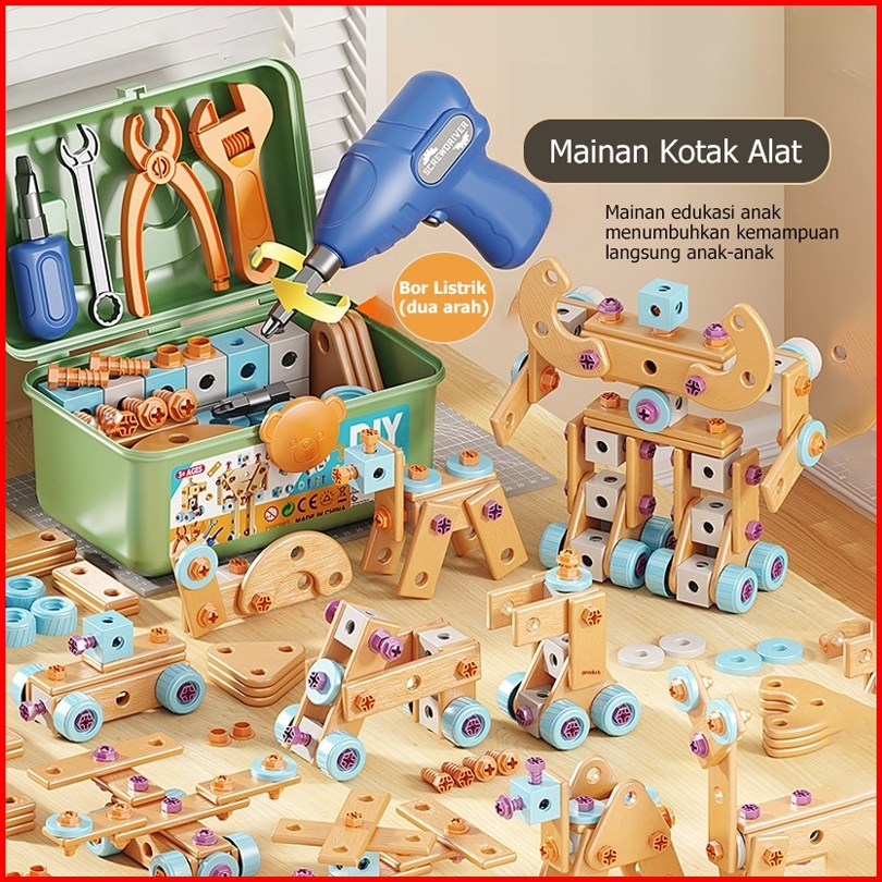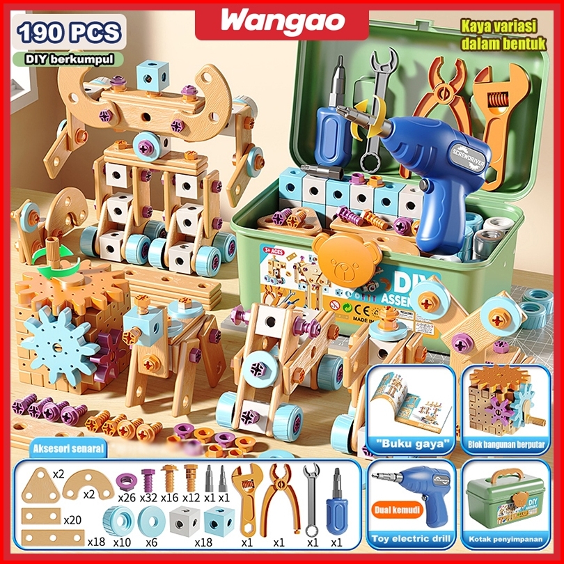 Wangao Mainan Edukasi Bor Listrik Tool Box Alat Perbaikan Simulasi Pembongkaran Dan Mainan Diy