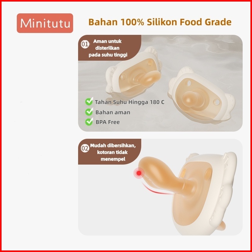 Minitutu Empeng Bayi 2in1 Baby Pacifier Newborn 0 6 Bulan Silikon Lembut Bpa Free Anti Sedak Bb146